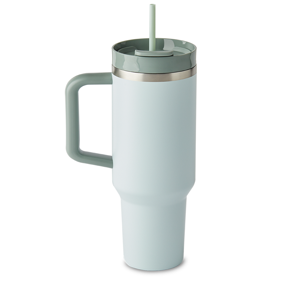 Stay hydrated with our biggest tumbler yet. The Tim Hortons 40oz Stainless Steel Tumbler is vacuum insulated to keep your favourite drinks cold up to 24 hours. The lid has 3 positions for straw. sipping. and closed. Available in multiple colors. Save $0.10 on refills. offer valid in Canada only. Terms apply. Visit restaurant for details.