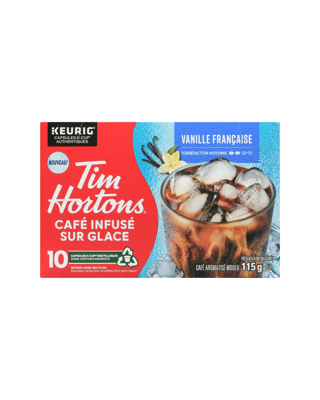 Enjoy the signature taste of Tim Hortons in a refreshing new way with the Brew Over Ice French Vanilla K-Cup Pods. Specially crafted to brew directly over ice. each pod delivers a bold. smooth and well-balanced iced coffee experience. Made with 100% premium Arabica beans. Available in original and vanilla blends. Single Serve Coffee Cups. compatible for use in all Keurig® K-CUP® machines.