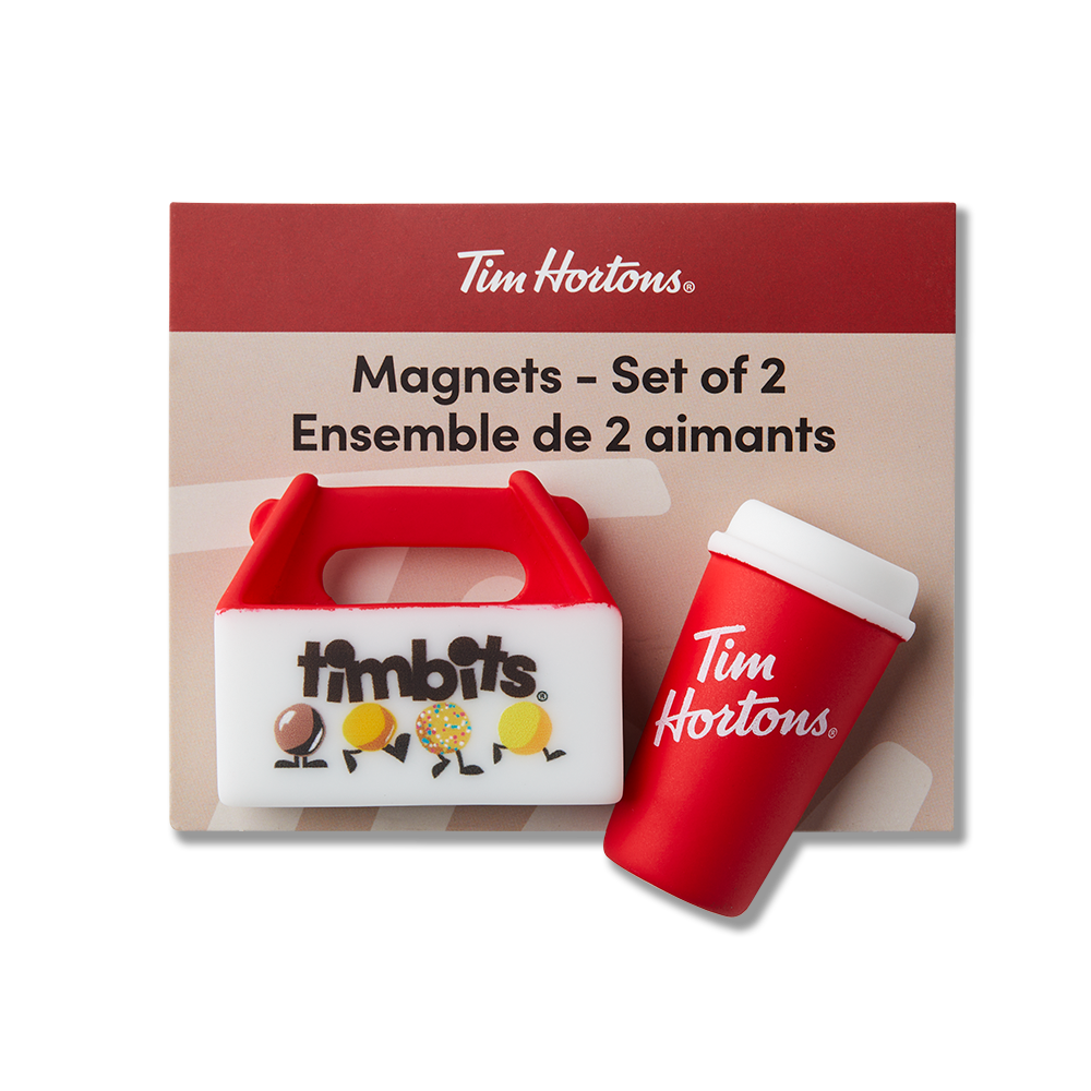 Add this playful. Canadian-inspired set of 2 magnets to your collection. or gift it to the Tims enthusiast in your life!